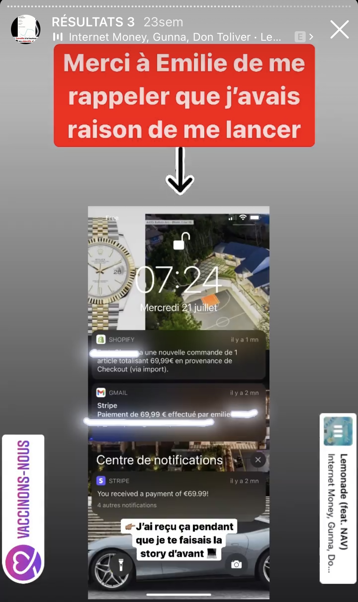Je pourrais le poster en story sur Instagram et j'aurai (encore) plus de crédibilité et témoignages client pour continuer à vendre des coachings.